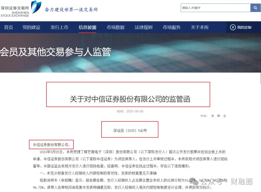 ]article_adlist-->2025年6月6日,深圳证券交易所发布关于对中信证券股份有限公司的监管函、关于对保荐代表人陈禹达、王彬给予通报批评处分的决定。